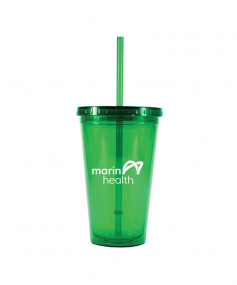 This is a BPA free 16 Oz. translucent acrylic double wall insulated cup with a matching PP straw. The O-ring keeps the straw in place. This tumbler includes a twist top lid. This item is non-microwavable and recommended hand wash only. Complies with Prop 65. 3.88" W x 6.13" H