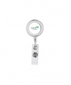 The Delfino round badge holder has a 36" retractable cable and crocodile clip on the back side. Complies with Prop 65. 1 1/4" W x 3 3/8" H x 3/4" D
