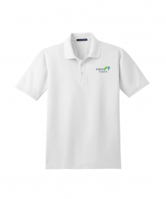 5.6-ounce, 60/40 cotton/poly. Includes double-needle stitching throughout. Flat knit collar and 3-button placket with dyed-to-match buttons. Features open hem sleeves and side vents.
