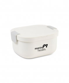 BPA free and made from food-grade materials. Includes fork, knife, and a 1.4 oz. dressing/sauce container that packs neatly into box. Two stackable compartments for separating and organizing meals and snacks. Lid has leakproof silicone sealing ring. Freezer safe and dishwasher safe (without lid). Microwave safe up to 3 minutes. Ideal for salads, sandwiches, or snacks on the go. 58 oz. capacity without inner tray. Complies with Prop 65. 3.9" W x 5.9" H x 7.4" L